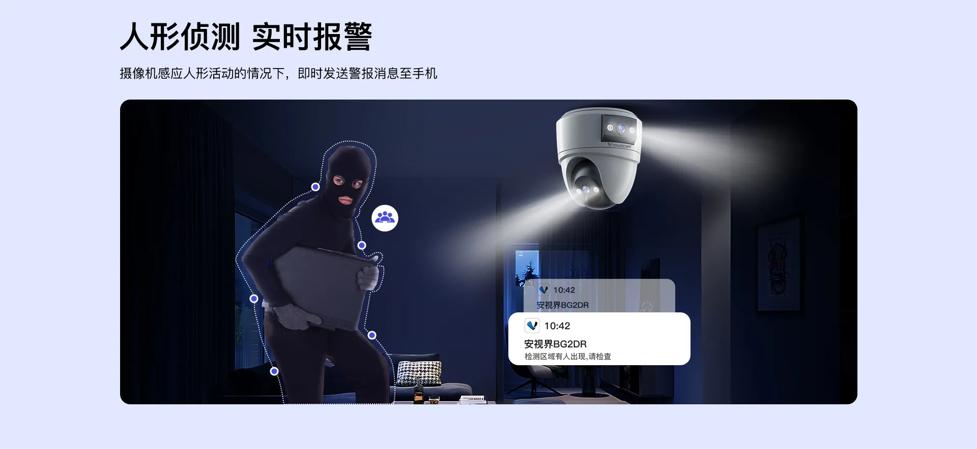 ✮人体移动智能侦测,智能报警推送 | ||