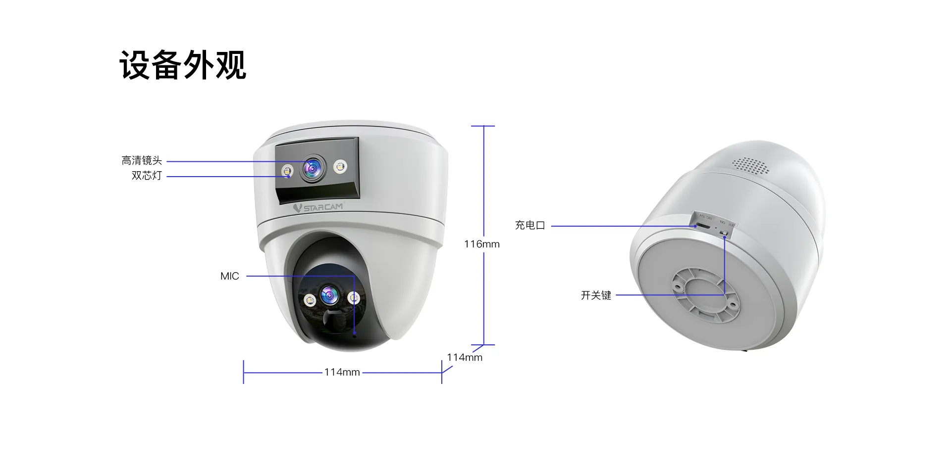 视频 | 夜视 | 全彩夜视,双光源,4颗双色双光源 |