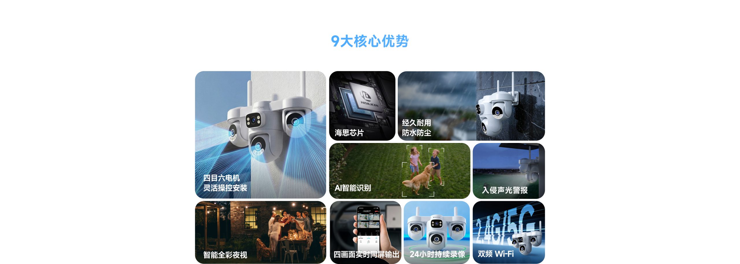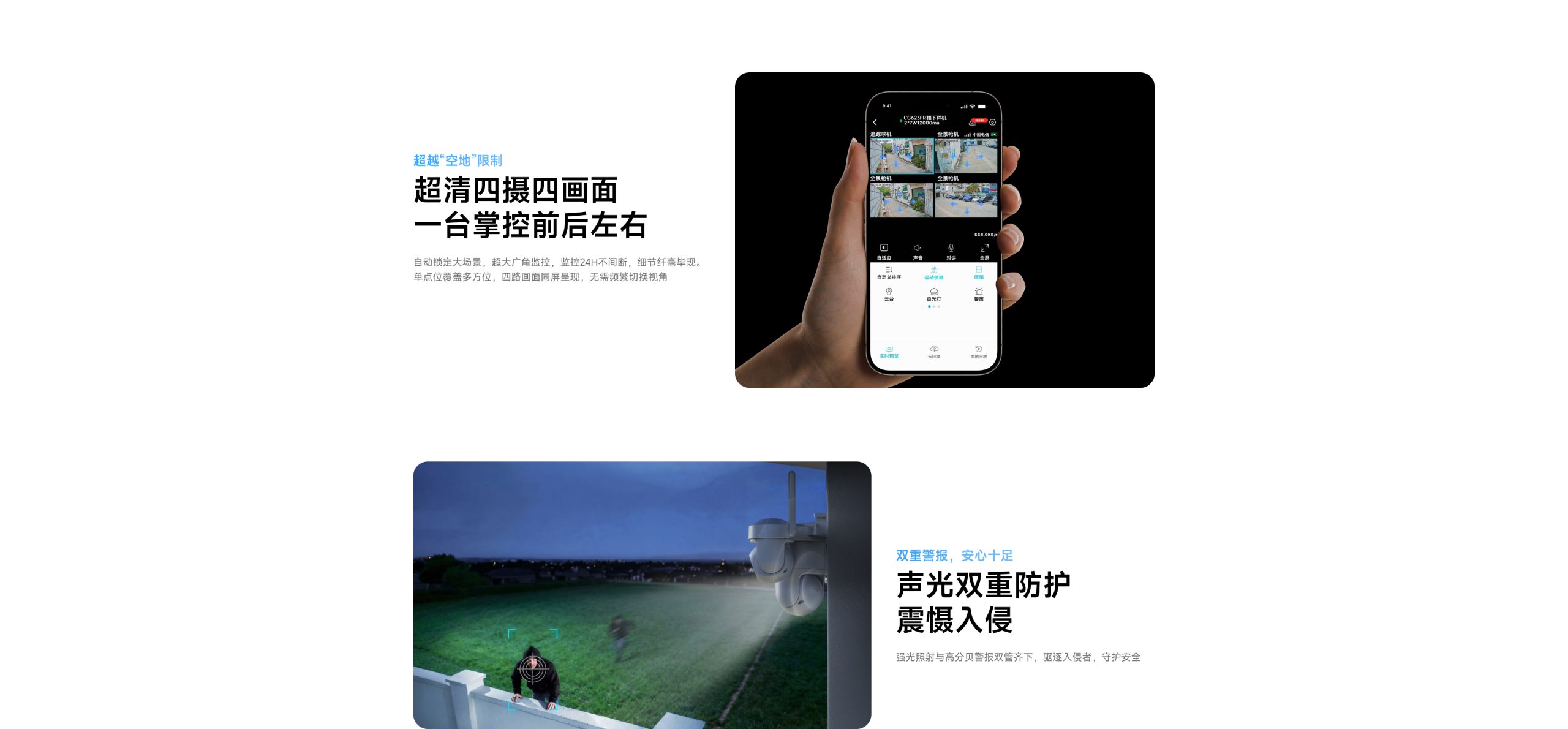 | ✮超大广角监控,六电机云台操控,灵活旋转,360度无遮挡 | ||