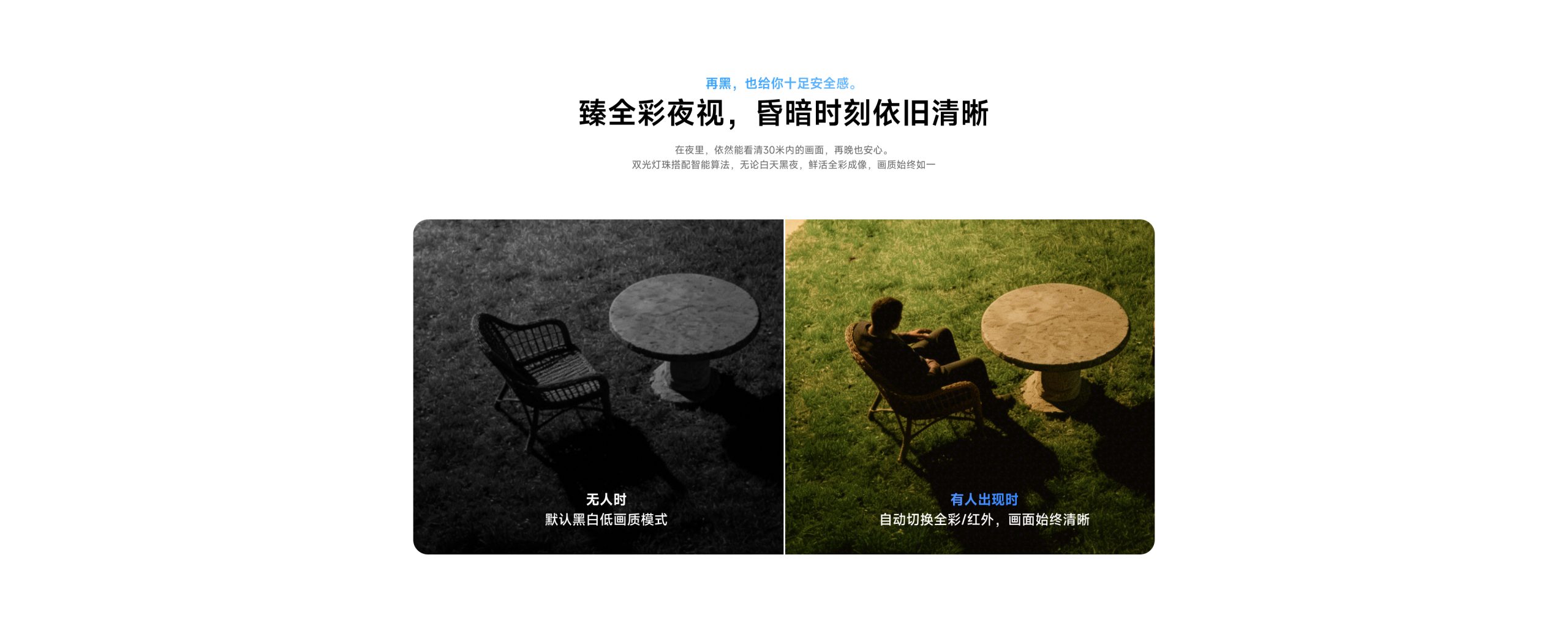 | ✮臻全彩夜视+黑白夜视,双光灯珠立体矩阵补光,全彩更清晰,夜视更明亮 | ||