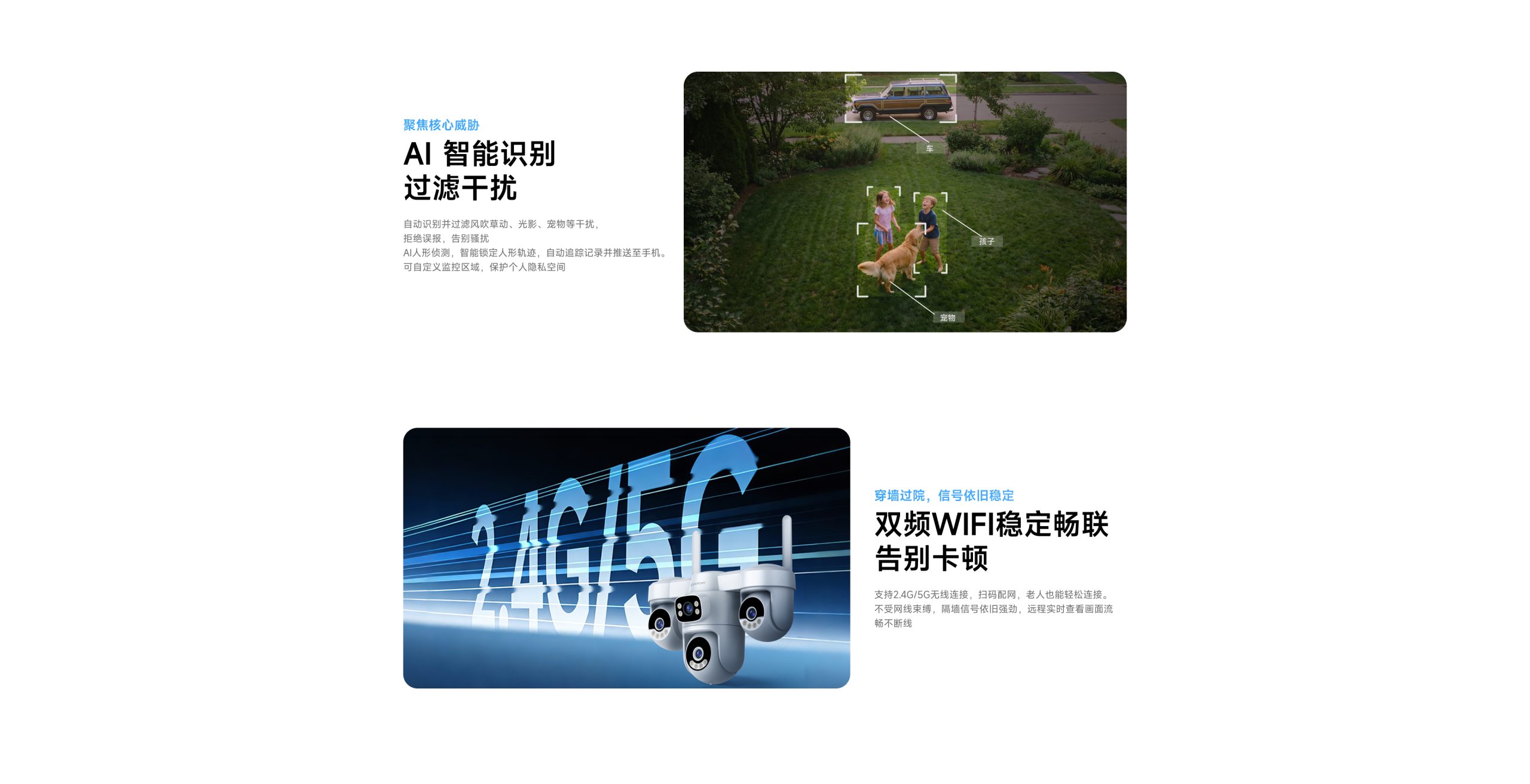 | 报警 | 报警检测 | 支持移动侦测,人形侦测,人形框定,区域侦测,警笛声报警,人形追踪 |