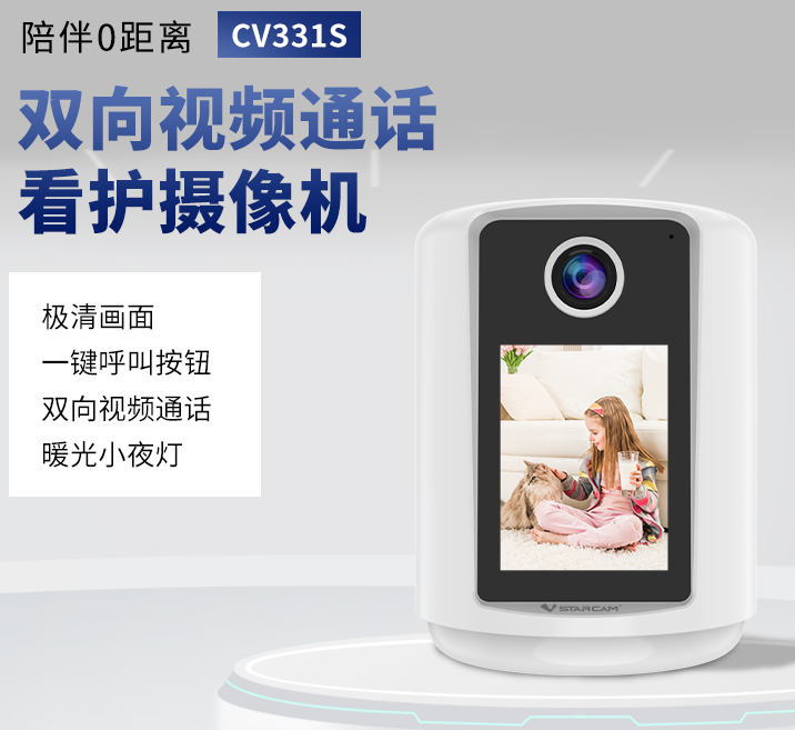 CV331S双向视频通话摄像机,手机实时通话对讲,双方可视查看家园和店铺实况,夜晚远程开启小夜灯,全彩夜视确保24小时清晰陪护。