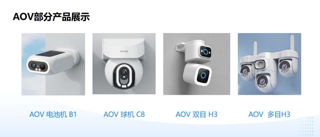 AOV产品作为核心创新,通过智能帧率切换与AI分析技术,实现电池供电下的持续录像功能,显著降低待机功耗,检测距离远超传统传感器。该技术已应用于电池机、球机、双目等多个产品形态。