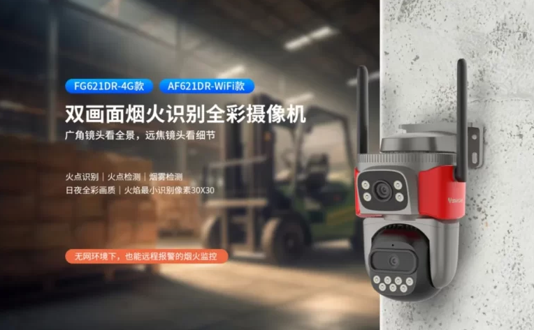 威视达康聚焦特殊场景安全需求,推出烟火探测摄像机系列(CS49LM/CG49LM、AF621DR/FG621DR等),这类摄像机内置智能烟火识别算法,能够灵敏捕捉烟雾和火源,从发现到告警推送仅需数秒。全彩夜视功能让夜间险情同样清晰可见,配合云存储,关键画面自动备份,即使设备损毁录像也不丢失,后续取证也可无忧调取影像。