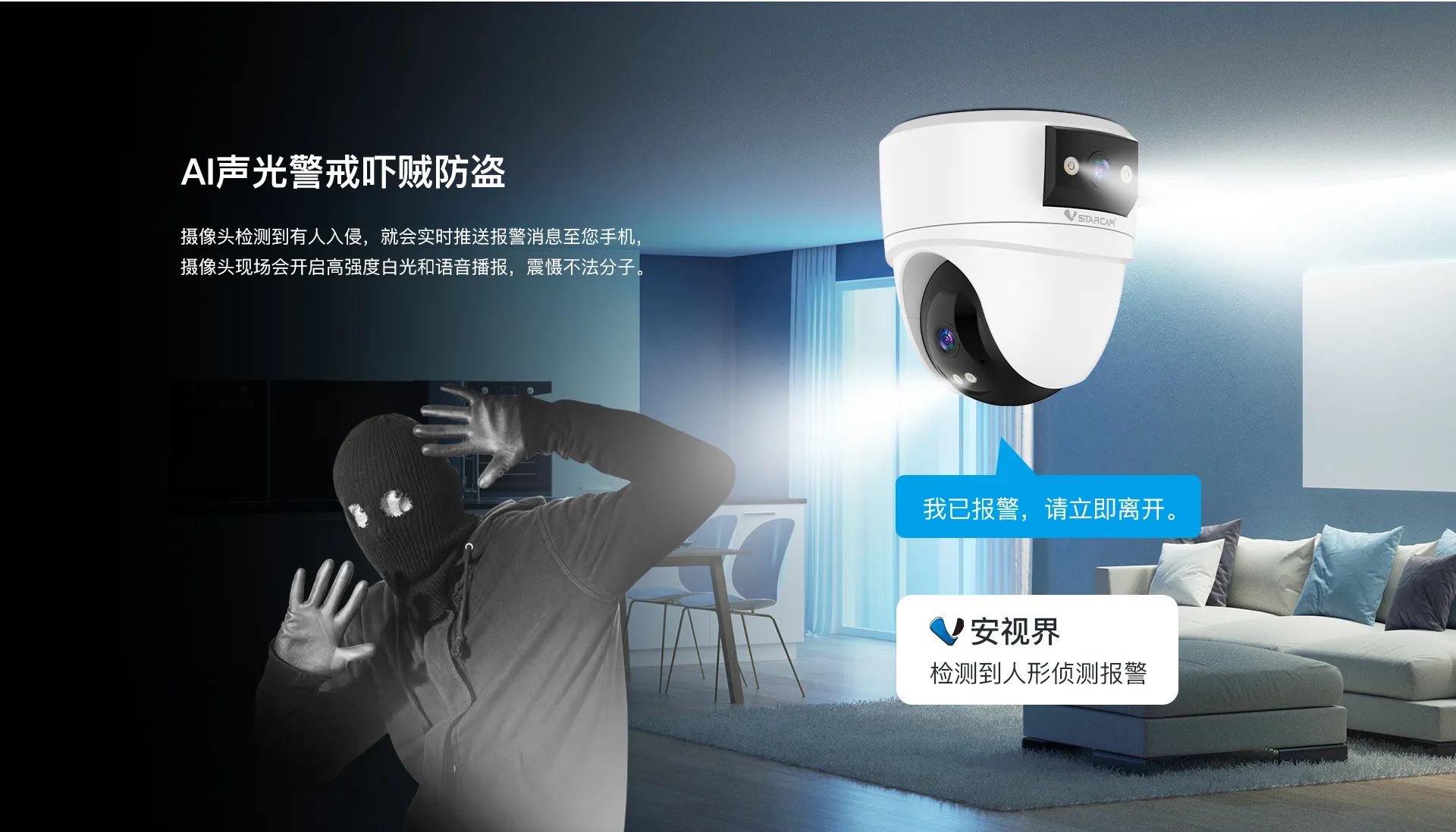 | 报警 | 报警检测 | 支持移动侦测,人形侦测,人形框定,区域侦测,人形追踪 |
