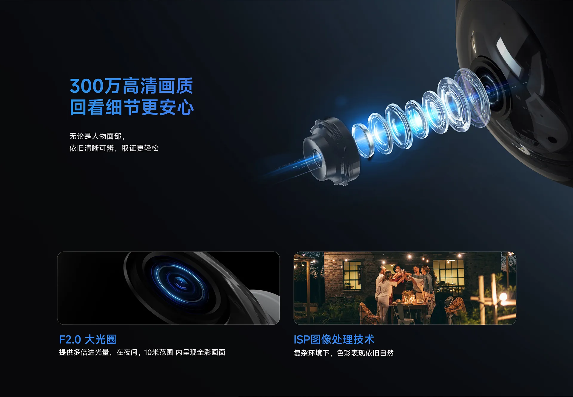 | ✮F2.0大光圈,多倍进光量,夜视更清晰 | ||