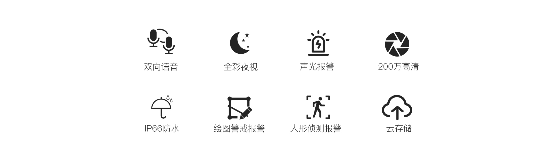 | 报警 | 报警检测 | 支持移动侦测,人形侦测,人形框定,区域侦测,人形追踪 |